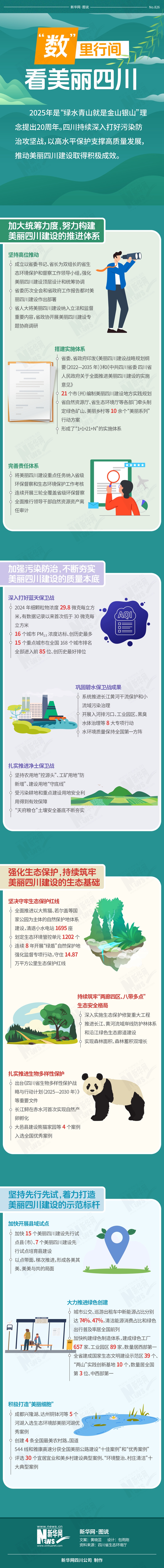 2025年是“綠水青山就是金山銀山”理念提出20周年。四川持續深入打好污染防治攻堅戰,以高水平保護支撐高質量發展,推動美麗四川建設取得積極成效。從“數”里行間,一起看看四川交出的“生態答卷”。