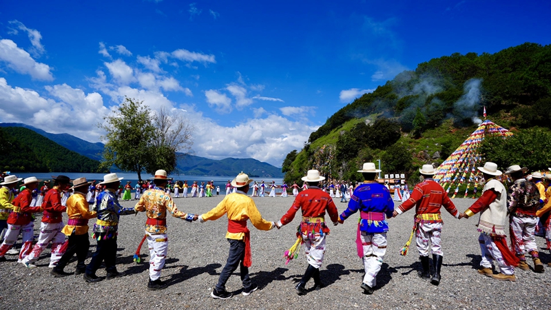 摩梭青年跳起熱情的甲搓舞。(鹽源縣委宣傳部 供圖)